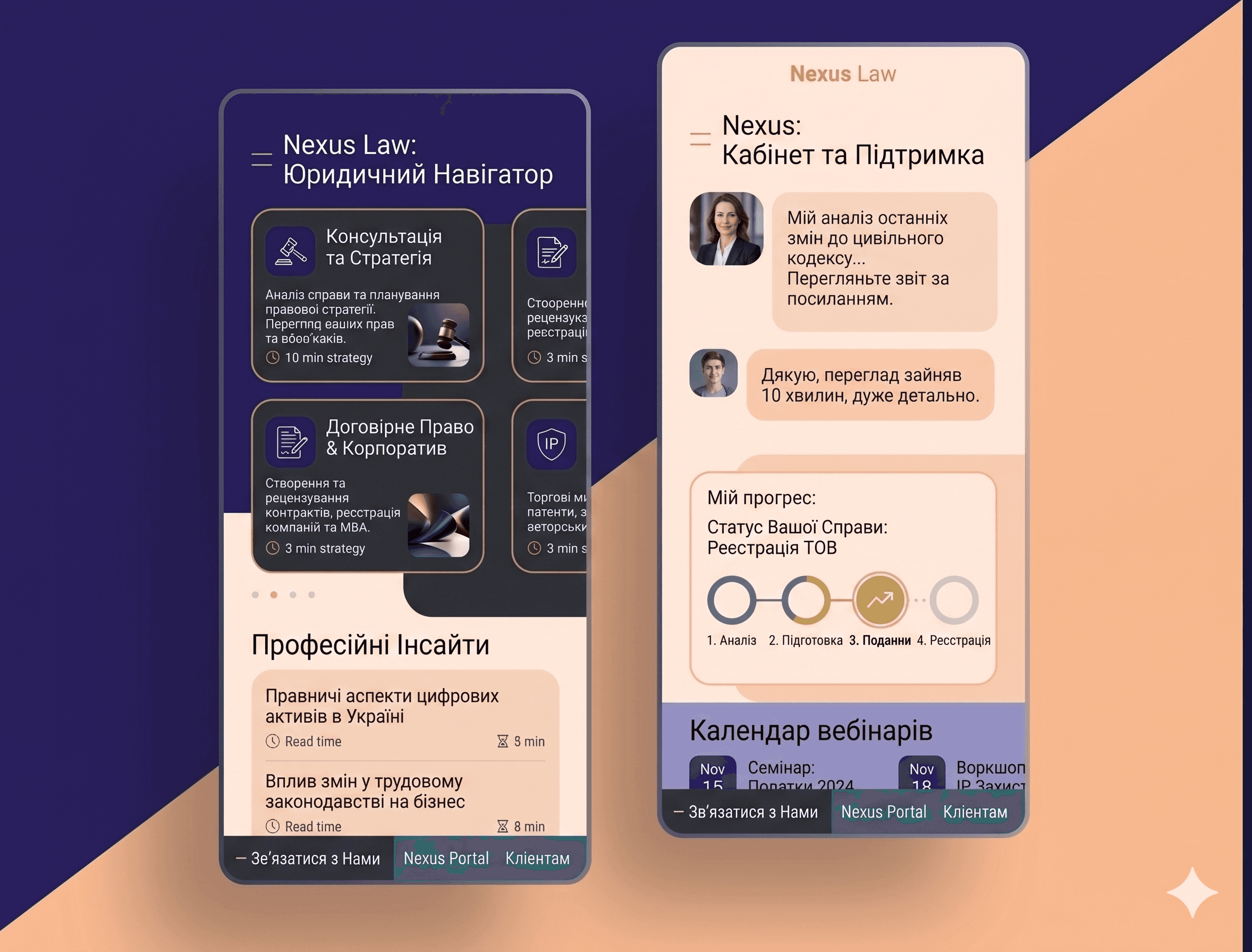 «Наш старий сайт виглядав як юридичний довідник минулого століття. Команда DIVA перепакувала нас у сучасний бренд. Тепер, коли ми скидаємо посилання потенційному партнеру, нам не треба пояснювати, чому наші послуги коштують дорого — візуал говорить сам за себе. Кількість звернень через сайт зросла вдвічі лише завдяки зміні позиціонування.»